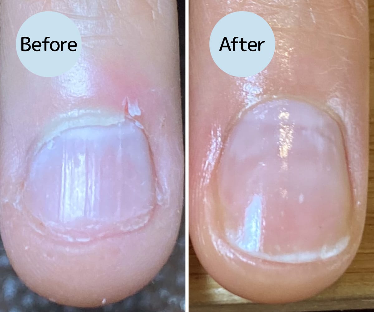 「爪のピンク色の部分、皆さんもよくご存じですよね。専門的には『ネイルベッド』または『爪床』と呼ばれます。今回のお客様は、このピンクの部分を長くしたいというご希望でご来店されました。適切なお手入れや爪の矯正で、理想的な美しい爪を手に入れましょう!」